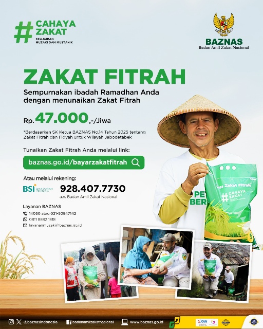 JAKARTA - Badan Amil Zakat Nasional (BAZNAS) RI telah menetapkan besaran zakat fitrah tahun 2025 yang harus dibayarkan setiap individu umat Muslim sebesar Rp47 ribu atau setara 2,5 kg atau 3,5 liter beras premium untuk wilayah.