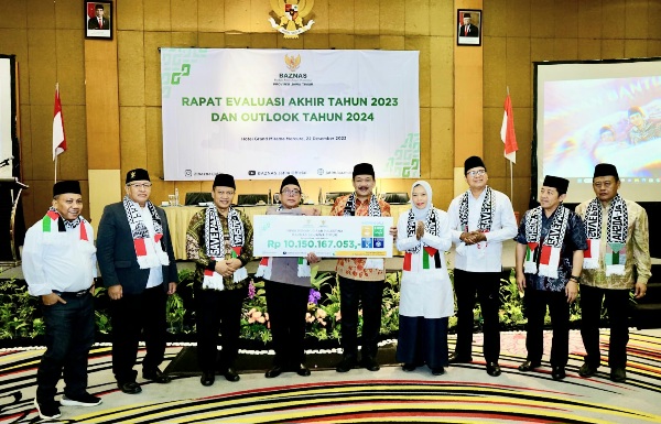 SinggalangNews.com, Jakarta - Badan Amil Zakat Nasional (BAZNAS) se-Jawa Timur menyalurkan infak kemanusiaan Palestina sebesar Rp10.150.167.053,- melalui BAZNAS RI, di sela-sela acara Rapat Evaluasi Akhir Tahun 2023 dan Outlook 2024, di Hotel.
