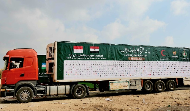 JAKARTA - Badan Amil Zakat Nasional (BAZNAS) RI bekerja sama dengan Bayt Zakat Wa As-Shadaqat Mesir mengirimkan tiga truk bantuan untuk masyarakat Palestina. Bantuan dikirim dari Kairo, Mesir pada Rabu (27/12/2023), dan saat ini truk bantuan.