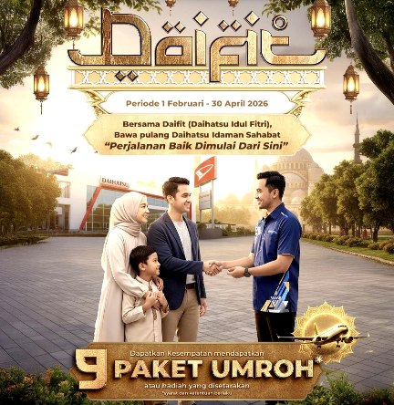 JAKARTA — Astra Daihatsu kembali menghadirkan program penjualan bertajuk DAIFIT (Daihatsu Idul Fitri) 2026 guna memberikan kemudahan bagi masyarakat Indonesia dalam memiliki kendaraan. Program ini berlaku untuk pembelian mobil Daihatsu selama.