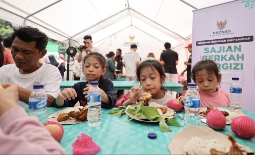 JAKARTA - Badan Amil Zakat Nasional (BAZNAS) melalui program Bank Makanan kembali mendistribusikan 7.800 paket makanan sajian berkah bergizi yang disediakan melalui layanan Dapur Umum BAZNAS untuk para.