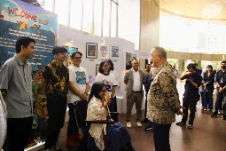 JAKARTA - PT Bank Negara Indonesia Tbk (BNI) hadirkan karya lukis seniman muda Indonesia di loby Kantor Pusat BNI di Jl Sudirman, Jakarta. Sebanyak 3 penyandang disabilitas turut menyumbangkan karya-karya yang menawan untuk dijadikan design.